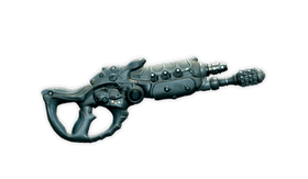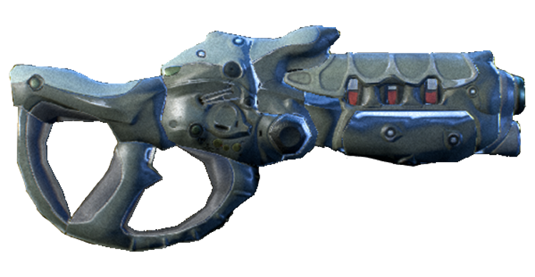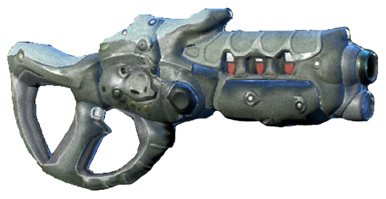 The Dhan is a kett semi-automatic weapon which unleashes a single plasma-surrounded projectile that causes devastating damage. The Dhan's large and dense projectiles can knock down opponents and generate magnetic fields sufficient to sustain plasma spheres. Dhan appears to translate to "peacebringer."