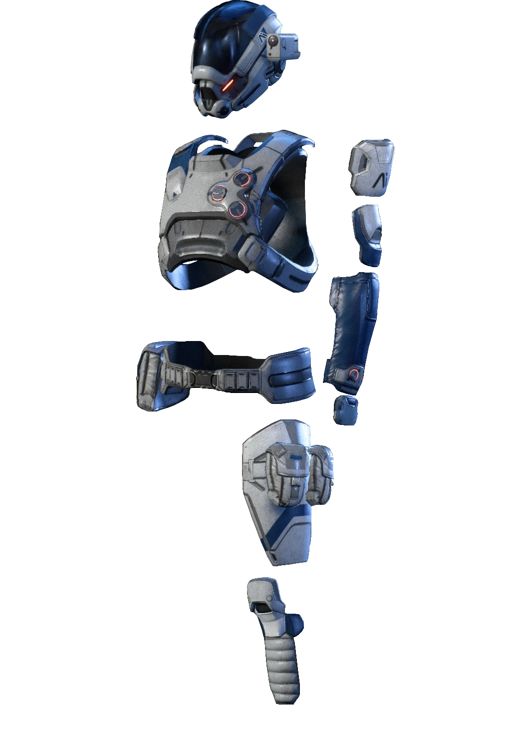 Standard-issue Andromeda Initiative hardsuits are designed for exploration as much as combat, combining jump-jets, high-grade external and internal sensors, and a variety of atmospheric filters with the usual kinetic barrier generators and ceramic armor plating. This particular suit has been customized according to specific hazard data gathered from the Heleus Cluster.