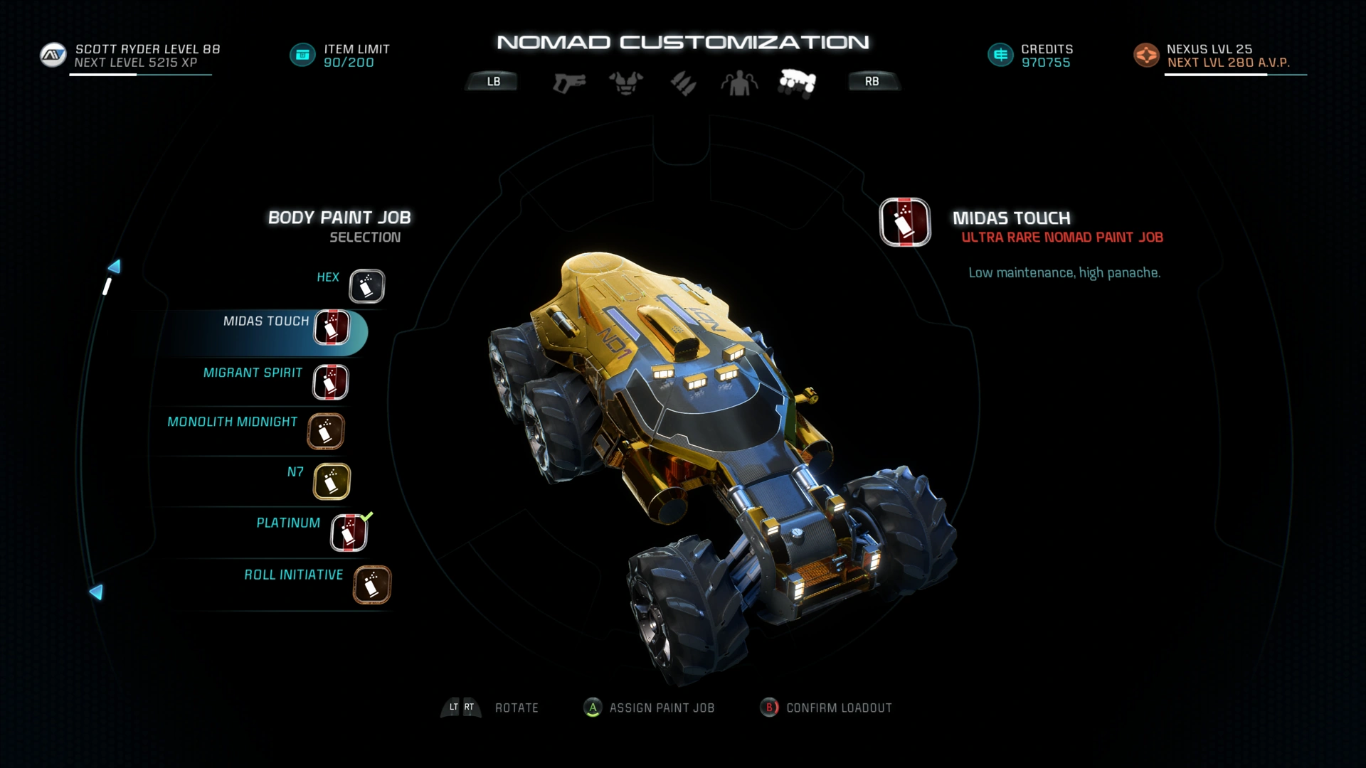 The Nomad's paint job can be customized in this window. Paint job selections are available on the left and can be previewed on the Nomad.
