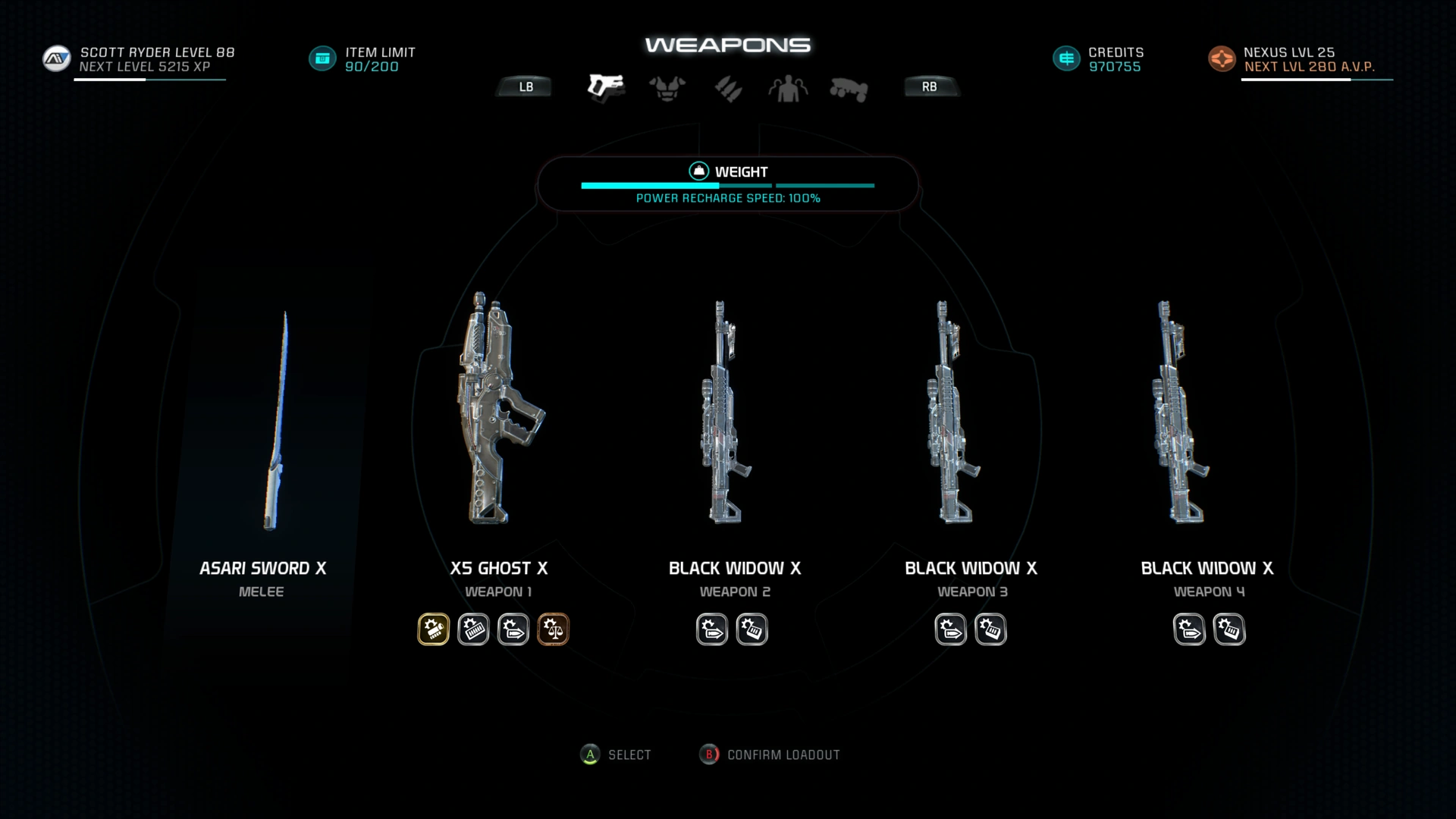 - This means that eventually all of the weapons at Rank X weigh half of what they do at Rank I. Even the heaviest weapon the Widow I at 65 weight points will be reduced to 33 weight points.
