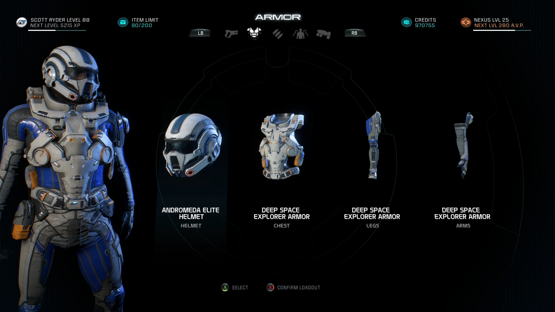 Loadout terminals allow players to change or modify their active weapons and mods, armor, consumables, choose squadmates, and customize the ND1 Nomad's look. A terminal is shown when deploying on a mission. It can also be accessed at a forward station or in the Tempest's Airlock just off the Bridge. The loadout screen will not be shown when arriving at the Nexus or landing on Aya, Kadara, or Meridian. It will be displayed when leaving Kadara Port for the Kadara Slums. Besides the normal locations for loadout terminals, there are a few missions and locations that have a Loadout terminal. These are marked with