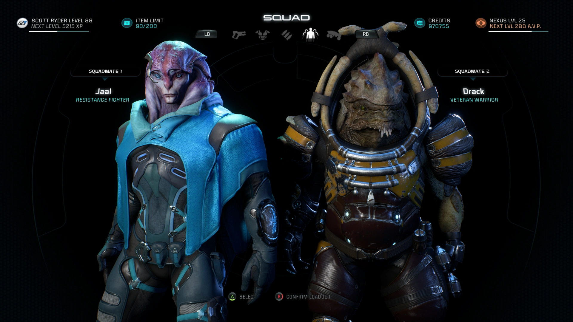 Two squad members can be selected. Some missions require a certain squadmate, so sometimes one will be locked in.