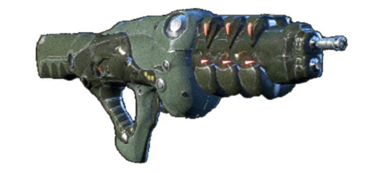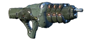 The kett Thokin, translated to "sudden death", fires tracking-enabled, plasma-surrounded rounds. The tracking effect—enabled by magnetic field adjustors in the projectiles—is slight but useful, particularly given the Thokin's low ammunition capacity. With such a weapon, accuracy is everything.